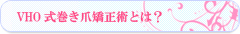 (VHO:Virtouse Human Orthonyxieの頭文字をとったもので、「熟練の技による人間的な巻き爪矯正法」というような意味です。)